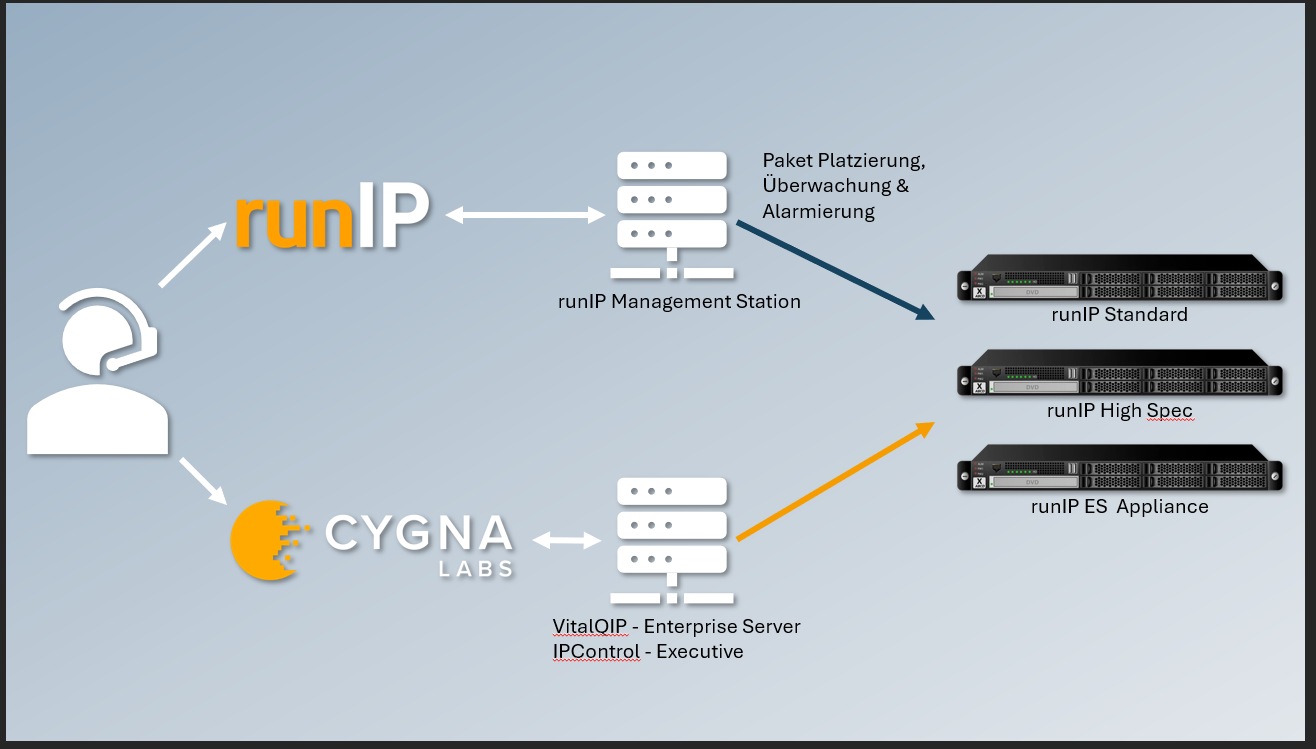 runIP unterstützt DDI-Lösungen von drei verschiedenen Herstellern, die einzeln, aber auch verschiedenartig eingesetzt werden können. Dadurch erhöht sich Ihre Flexibilität, Planbarkeit, sowie Zukunfts- und Kostensicherheit.