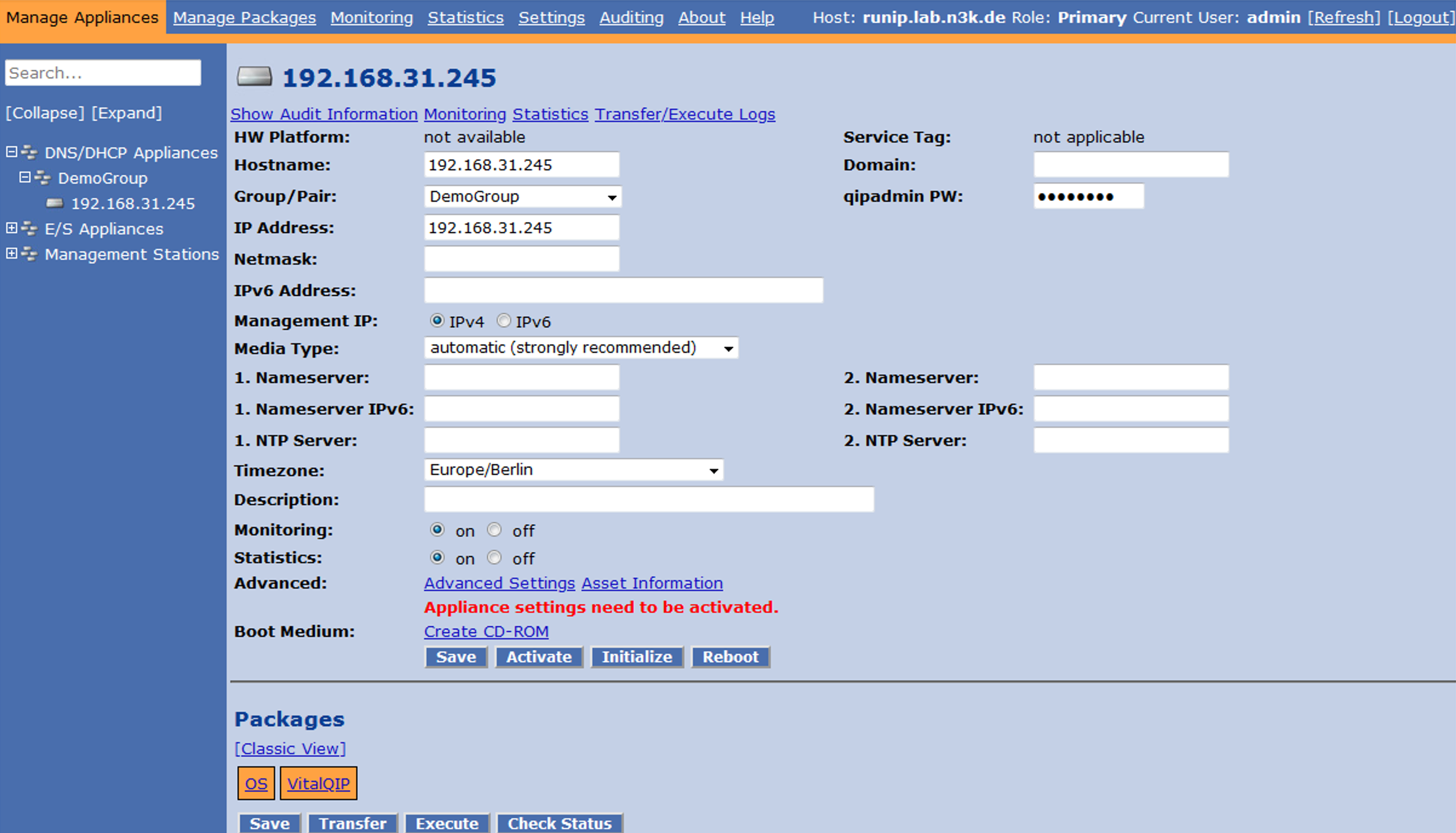 runIP erlaubt Ihnen auch die zentrale Pflege Ihrer DDI-Konfiguration für die vorhandenen runIP-Appliances. Selbst das zugrundeliegende Betriebssystem wird über die Management-Lösung aktualisiert, ohne dass Sie vor Ort sein müssen.