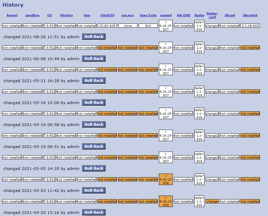 Eine einzigartige Funktion der Management Station ist die Möglichkeit, vergangene Versionsstände der einzelnen Software-Pakete für Gruppen und einzelne Appliances vorzuhalten und bei Bedarf per Maus-Click wiederherzustellen. Auf diese Weise können Sie bereits durchgeführte Änderungen gezielt rückgängig machen, falls diese sich in der Praxis nicht bewährt haben.