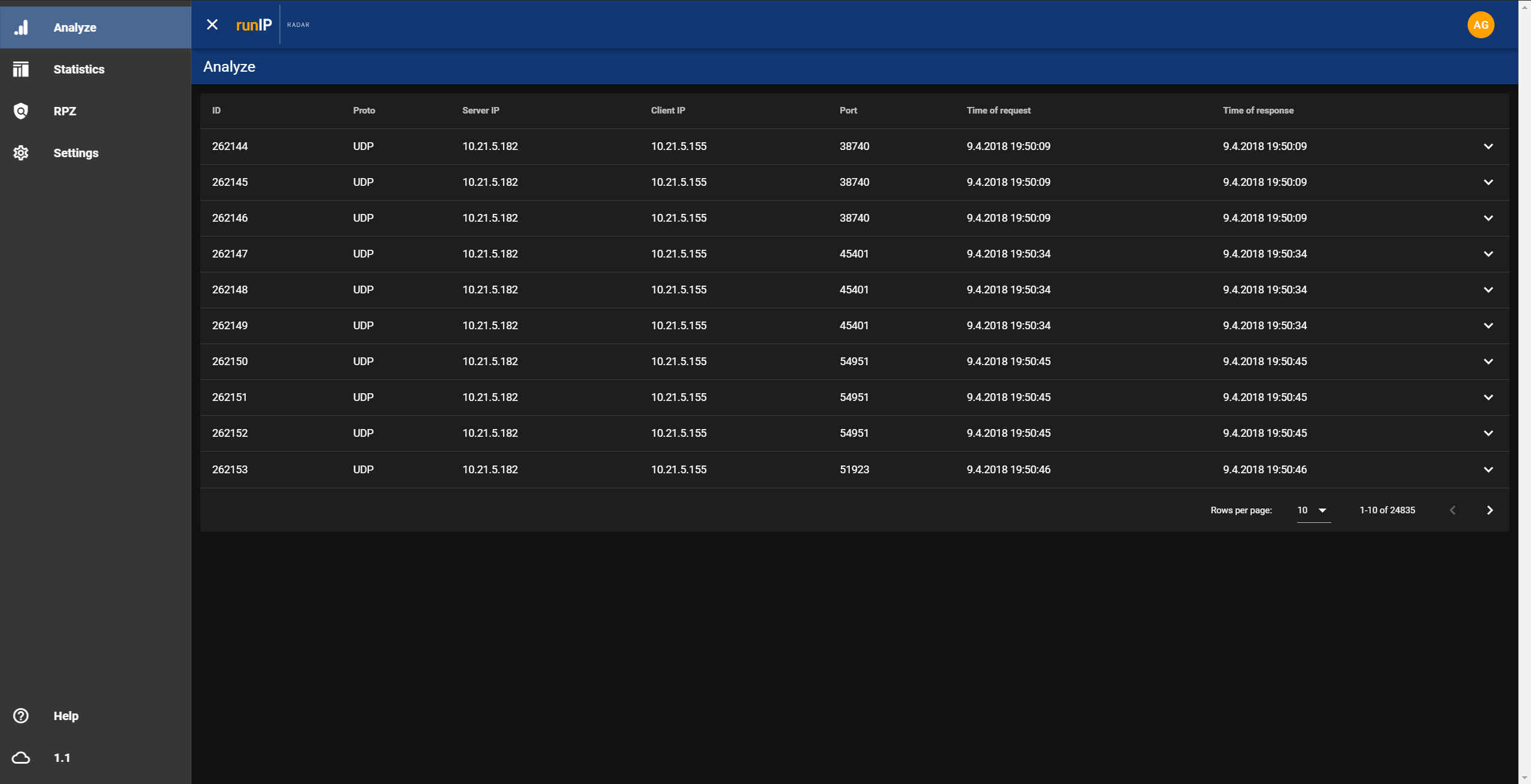 runIP RADAR läuft als Dienst auf den runIP Appliances von N3K für das effiziente Management von DDI-Lösungen. Der Service liest den gesamten DNS-Verkehr sowie sämtliche DHCP-Messages mit. Dabei beschränkt die Lösung sich nicht auf DNS-Anfragen, sondern loggt auch die Antworten des DNS-Servers, sodass eine umfassende Dokumentation sämtlicher DNS-Aktivitäten entsteht.